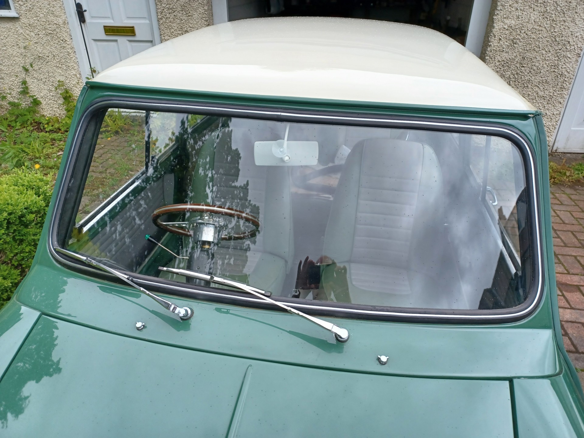 - Shell sprayed in original Almond Green with Old English White roof.