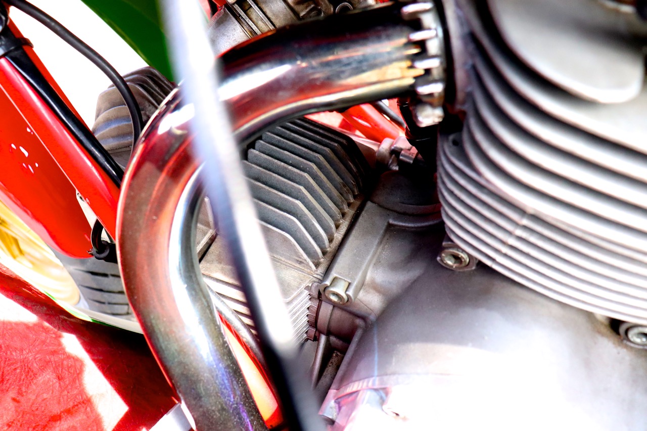 During our ownership, we repainted (fiber glass only due to age) paying special attention to correct period colour and spec. Oil changed every year. Bearings inspected, forks have new seals and oil. Valve clearance check / New clutch cable / New throttle cables / New Dellorto gasket kit installed. Engine was refreshed by previous owner in Italy.